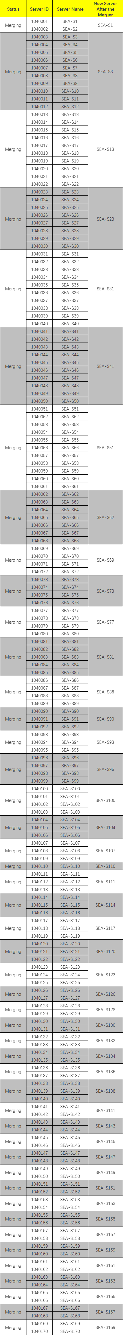To improve the in-game engagement and bring everyone a better experience, we will be performing server merge from 15:00 to 17:00 on Oct. 24th. During this time, the game will be unavailable to play. Times are approximate. When the maintenance is completed, a compensation reward will be delivered. Sorry for the inconvenience. Thank you for your support and patience.