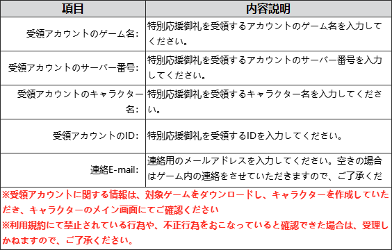・本社の他タイトルにおいての特別支援御礼申請の受付